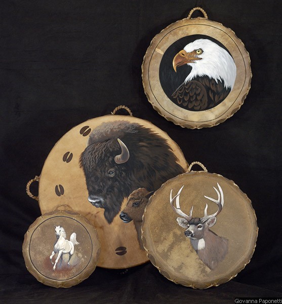 Painted Drum Gallery -- Click on an thumbnail to see a larger image and begin the slide show presentation.